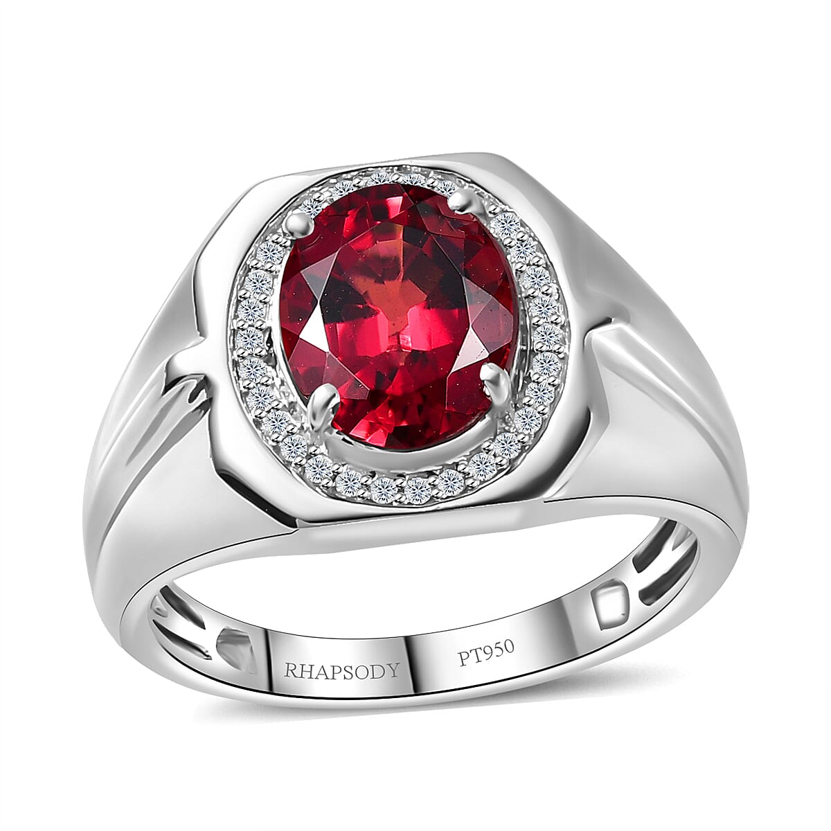Rhapsody 950 Platinum AAAA Ofiki Rubellite and E-F VS Diamond Men's Ring (Size 11.0) 10.70 Grams 3.10 ctw