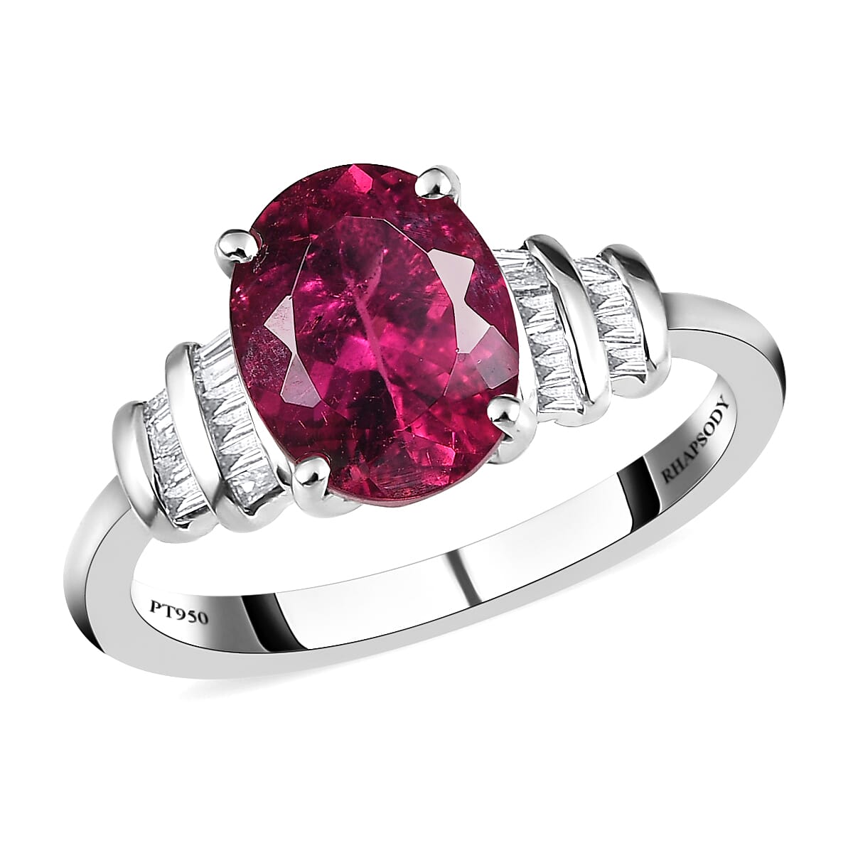 Rhapsody 950 Platinum AAAA Ouro Fino Rubellite and EF VS2 Diamond Ring (Size 5.0) 4 Grams 1.90 ctw (Delivery in 14-20 Business Days)