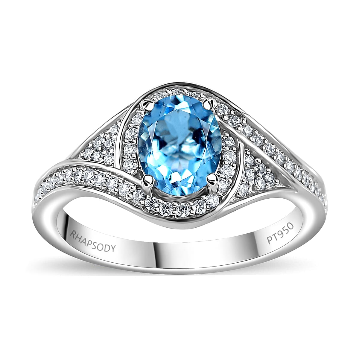 Rhapsody 950 Platinum AAAA Santa Maria Aquamarine and E-F VS Diamond Ring (Size 5.5) 6.40 Grams 1.35 ctw