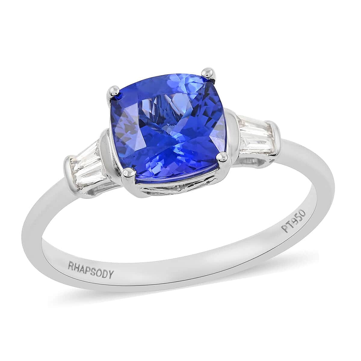 Rhapsody 950 Platinum AAAA Tanzanite and E-F VS Diamond Ring (Size 7.5) 5.15 Grams 2.70 ctw