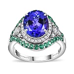 Rhapsody 950 Platinum AAAA Tanzanite, Boyaca Colombian Emerald and E-F VS2 Diamond Ring (Size 5.0) 8.55 Grams 5.90 ctw