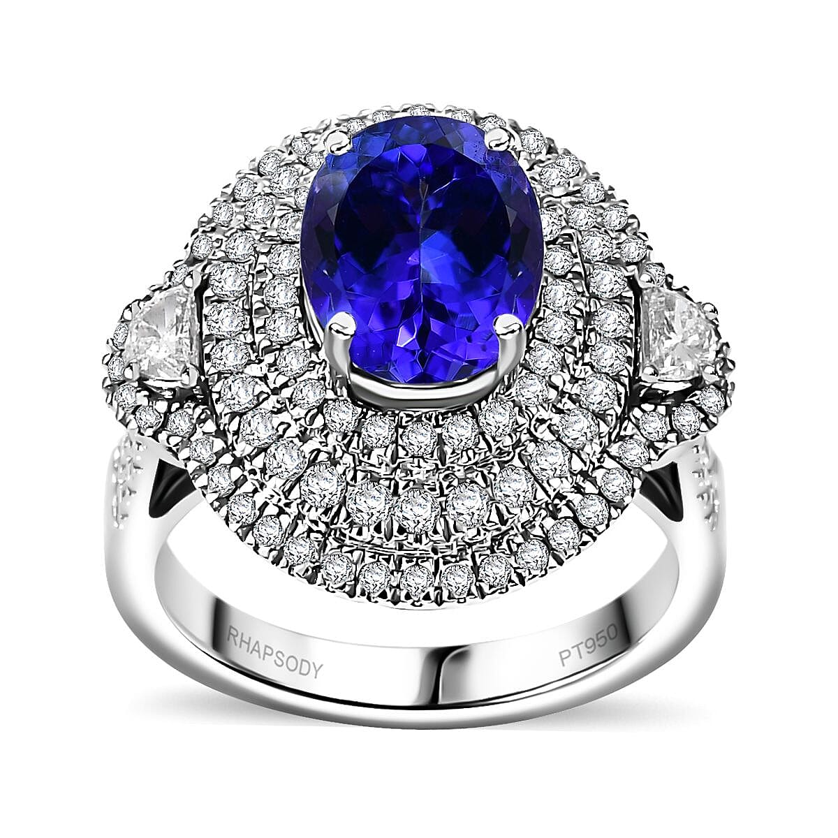 Rhapsody 950 Platinum AAAA Tanzanite, Diamond (E-F, VS) Ring (Size 7.0) 4.36 ctw