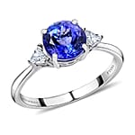 Rhapsody 950 Platinum AAAA Tanzanite Ring, E-F VS Diamond Accent Ring, Certified & Appraised Tanzanite Ring, Trilogy Ring, 950 Platinum Ring, Trilogy Engagement Ring 2.10 ctw