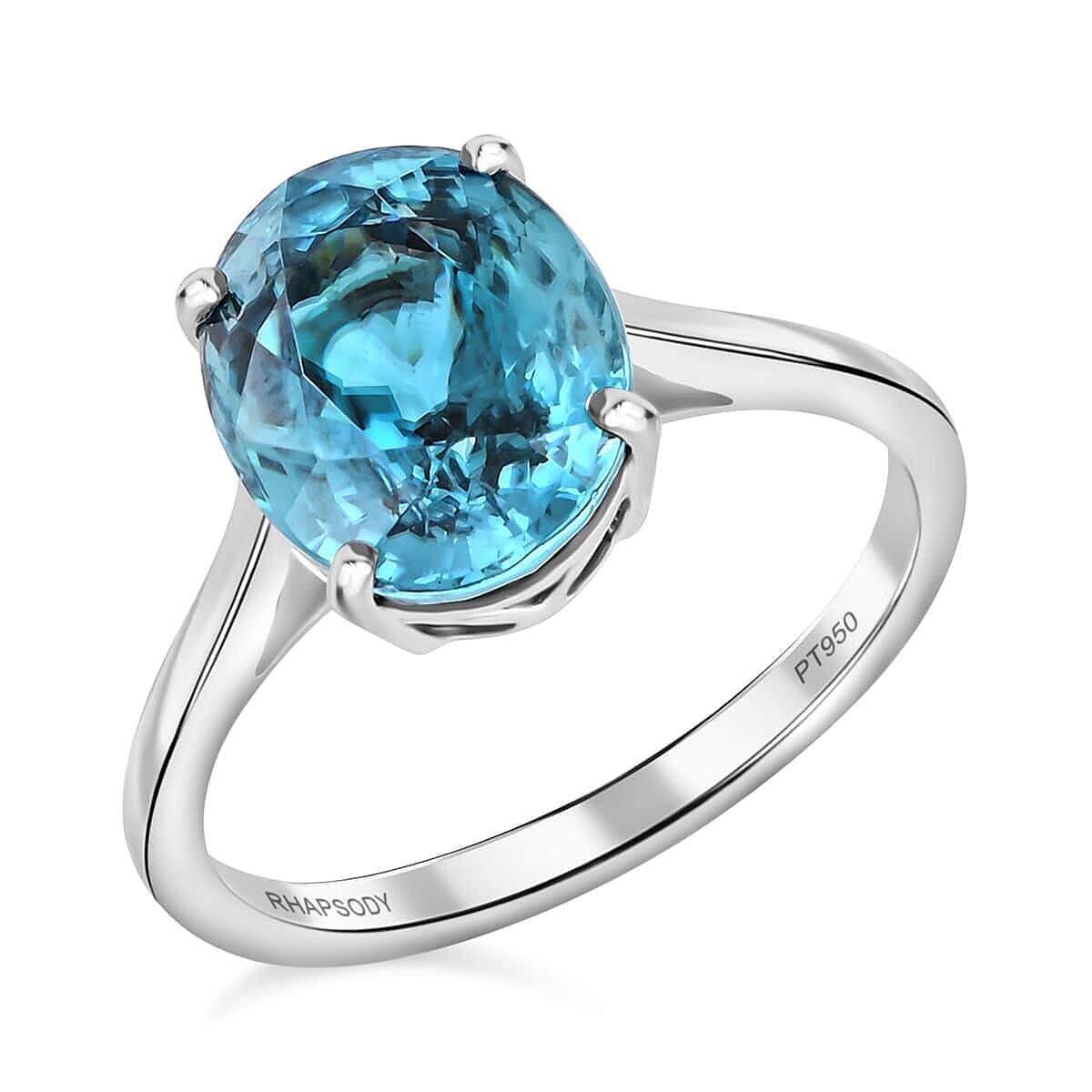 Rhapsody AAAA Cambodian Blue Zircon 6.75 ctw Solitaire Ring in 950 Platinum (Size 6.5) 4.49 Grams