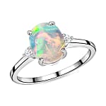 Rhapsody AAAA Ethiopian Welo Opal and E-F VS2 Diamond Ring in 18K White Gold (Size 7.5) 1.30 ctw (Del. in 10-12 Days)