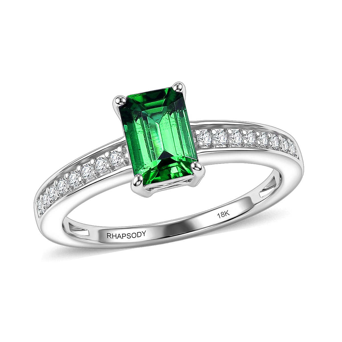 Rhapsody AAAA Kagem Zambian Emerald and Diamond G-H SI 1.25 ctw Ring in 18K White Gold (Size 7.0)