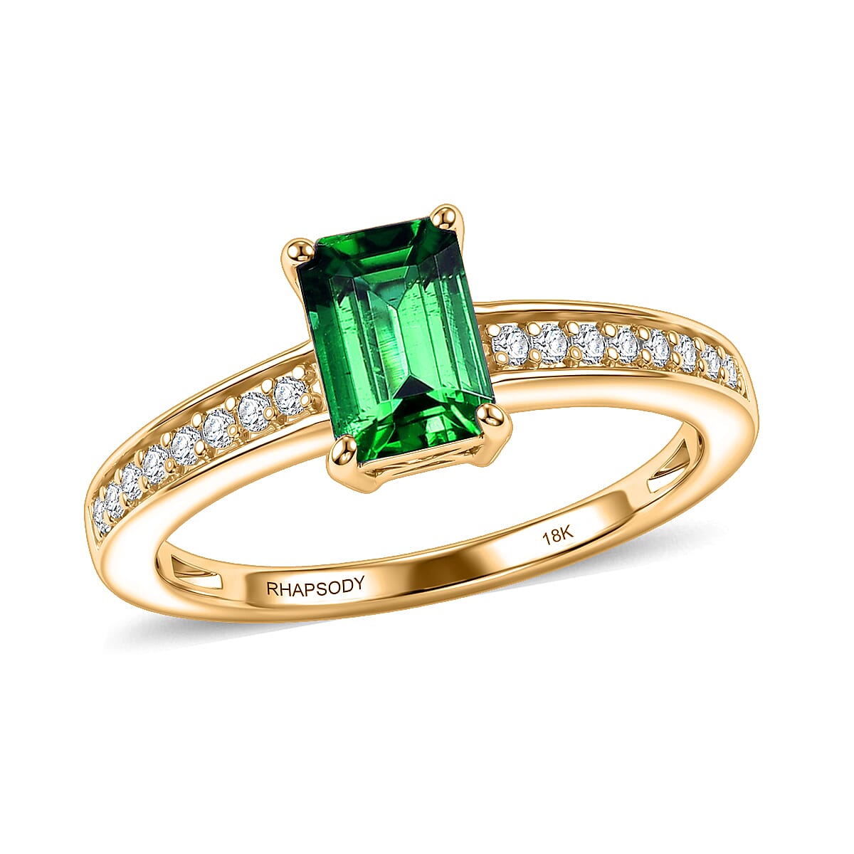 Rhapsody AAAA Kagem Zambian Emerald and Diamond G-H SI 1.25 ctw Ring in 18K Yellow Gold (Size 4.5)