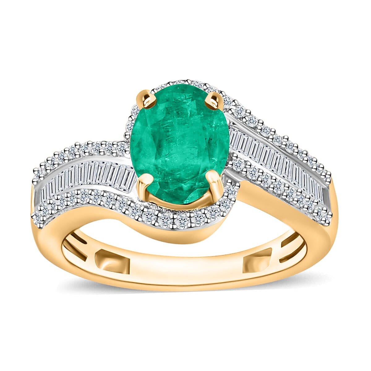 Rhapsody AAAA Kagem Zambian Emerald and E-F VS2 Diamond 1.55 ctw Ring in 18K Yellow Gold (Size 11.5) 4.95 Grams (Del. in 10-12 Days)
