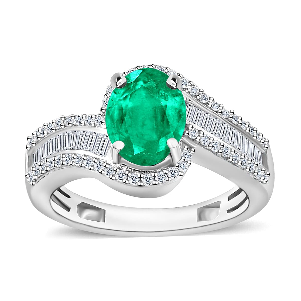 Rhapsody AAAA Kagem Zambian Emerald and E-F VS2 Diamond 1.55 ctw Ring in 950 Platinum (Size 12.0) 6.25 Grams (Del. in 10-12 Days)