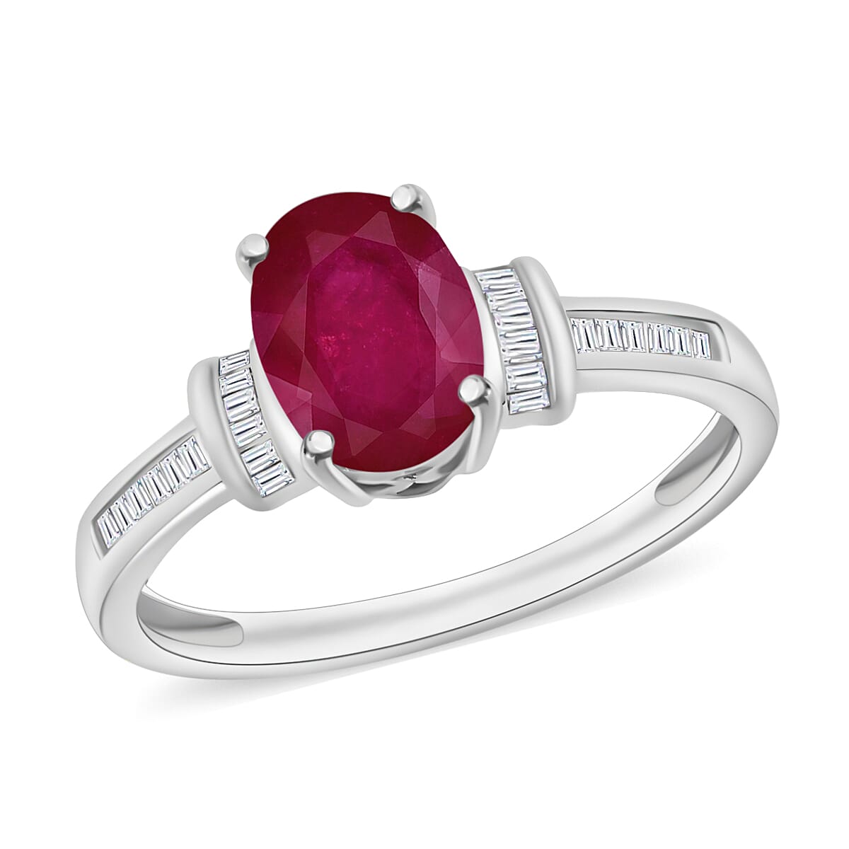 Radiate sophistication with this ruby and diamond ring in durable metal. Its blood-red ruby creates an aura of distinction and refined taste. You'll appreciate how this custom ring complements your personal style with elegant brilliance.