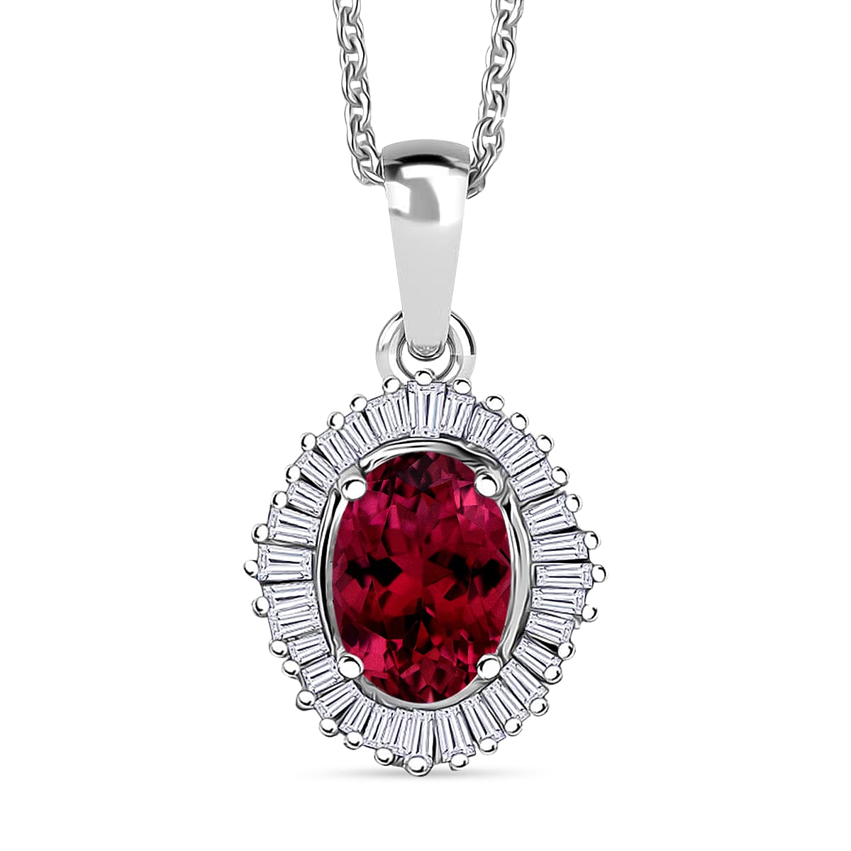 Rhapsody AAAA Ouro Fino Rubellite and E-F VS Diamond 1.00 ctw Pendant Necklace in 950 Platinum 20 Inches