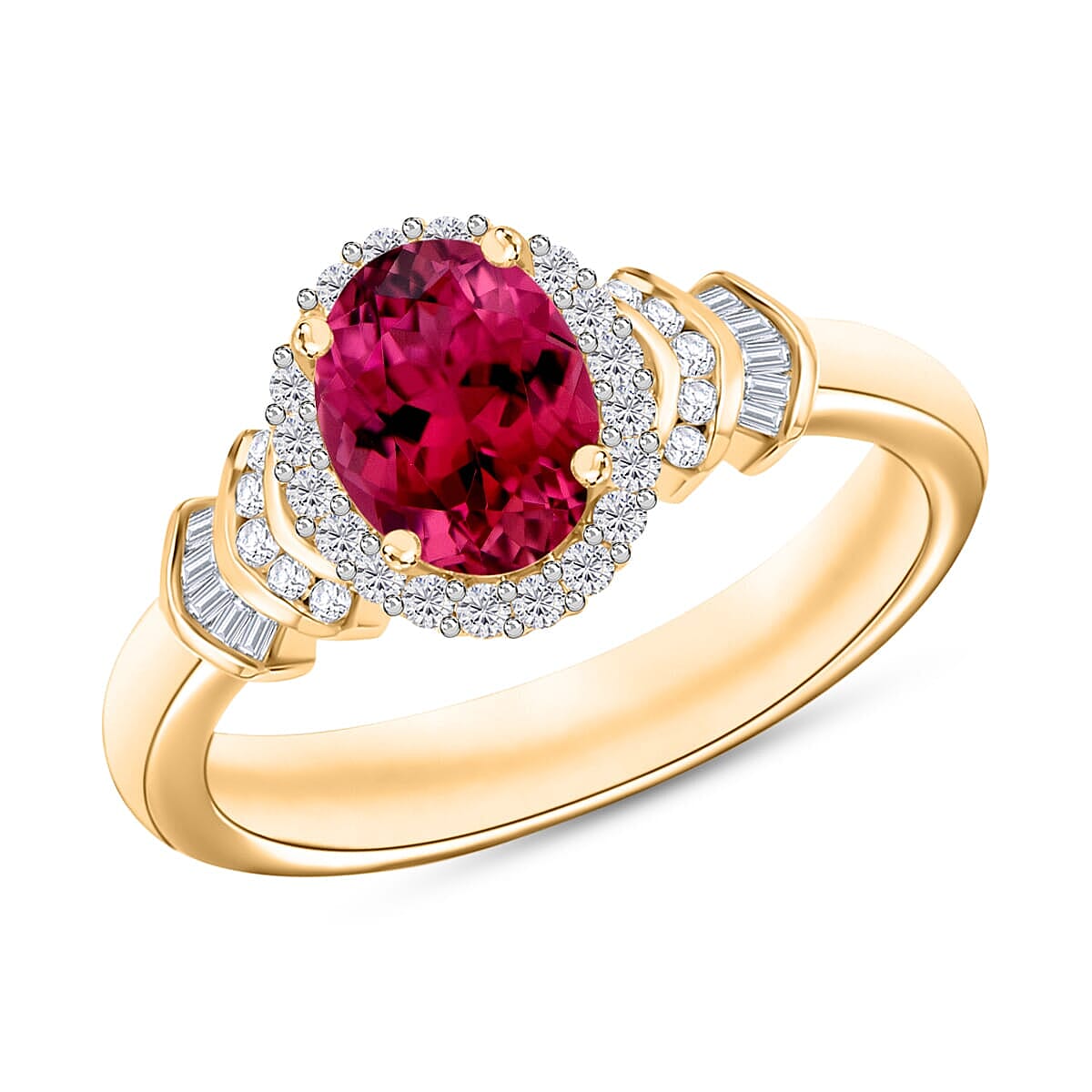Rhapsody AAAA Ouro Fino Rubellite and E-F VS2 Diamond 1.60 ctw Ring in 18K Yellow Gold (Size 5.0) (Del. in 10-12 Days)