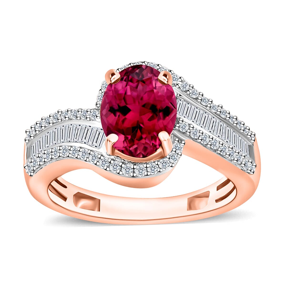 Rhapsody AAAA Ouro Fino Rubellite and E-F VS2 Diamond 1.65 ctw Ring in 18K Rose Gold 4.95 Grams (Del. in 10-12 Days)