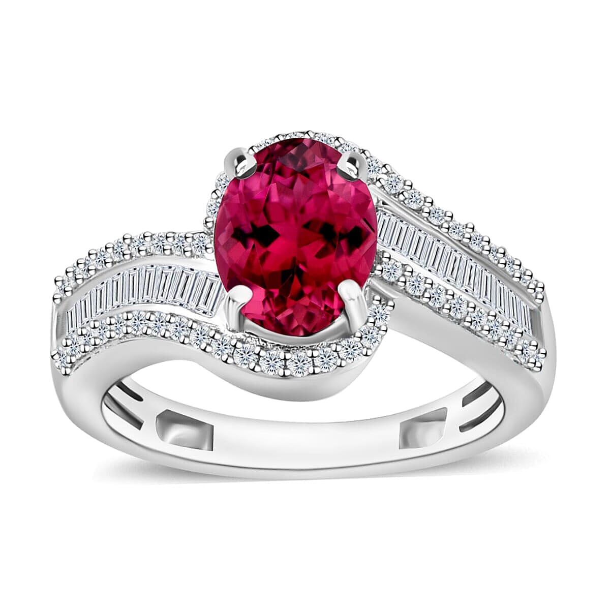 Rhapsody AAAA Ouro Fino Rubellite and E-F VS2 Diamond 1.65 ctw Ring in 18K White Gold (Size 10.0) 4.95 Grams (Del. in 10-12 Days)