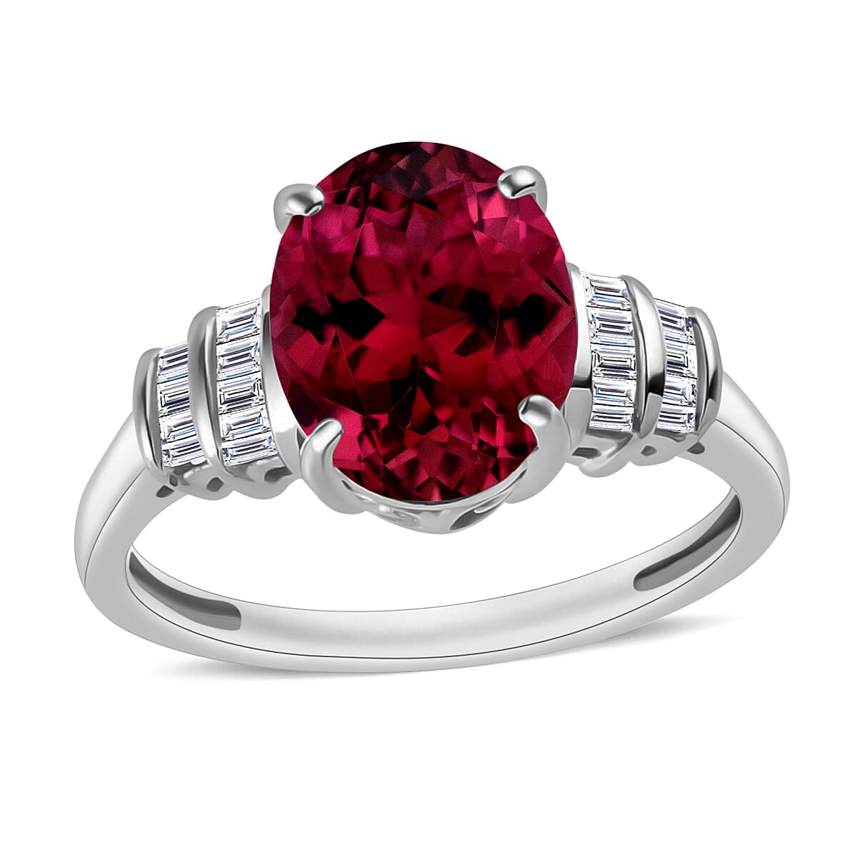 Command attention with this rubellite ring in premium metal. The rosy pink gemstone radiates sophistication against pristine diamond accents. You will feel powerful wearing this custom ring for special moments.