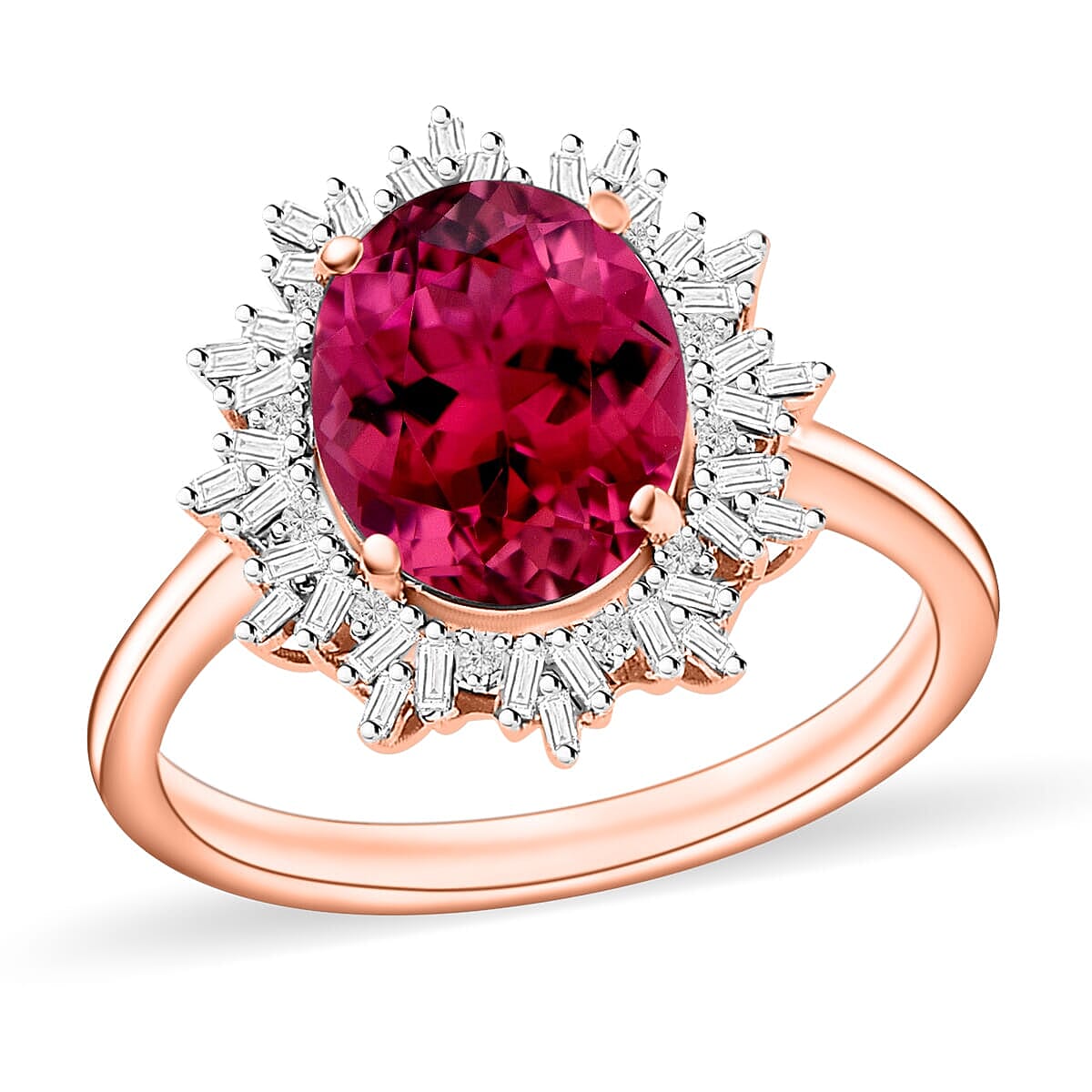 Rhapsody AAAA Ouro Fino Rubellite and E-F VS2 Diamond 2.95 ctw Ring in 18K Rose Gold (Size 5.5) 5.15 Grams (Del. in 10-12 Days)