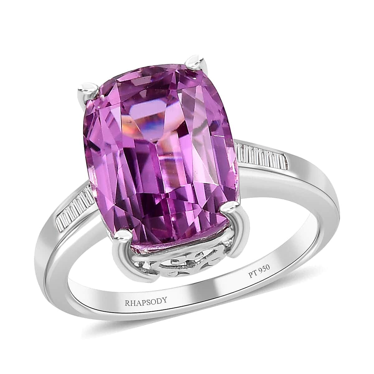 Rhapsody AAAA Patroke Kunzite and E-F VS Diamond 6.85 ctw Ring in 950 Platinum (Size 7.5) 6.80 Grams