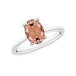 A. Its single, prong-set oval morganite with a delicate pink hue creates a classic and elegant statement.