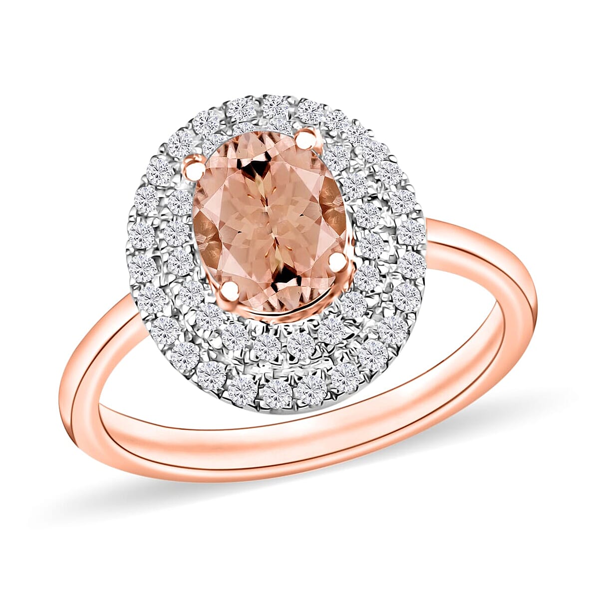 Rhapsody AAAA Pink Morganite and E-F VS2 Diamond 1.65 ctw Double Halo Ring in 18K Rose Gold (Size 9.5) 4 Grams (Del. in 10-12 Days)