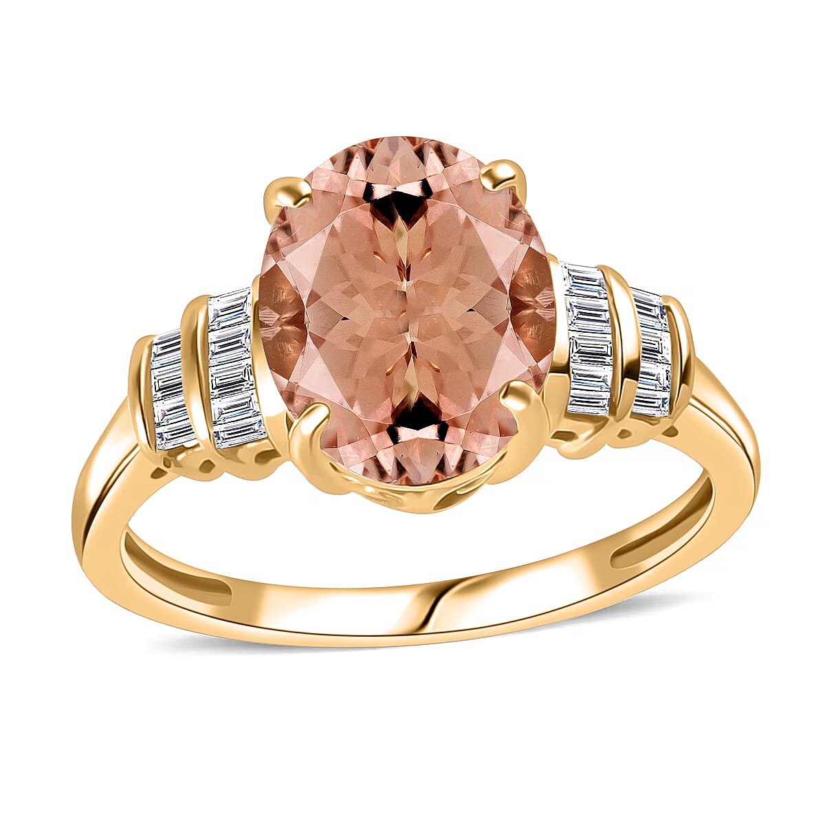 Rhapsody AAAA Pink Morganite and E-F VS2 Diamond 2.50 ctw Ring in 18K Yellow Gold (Size 4.5) (Del. in 10-12 Days)