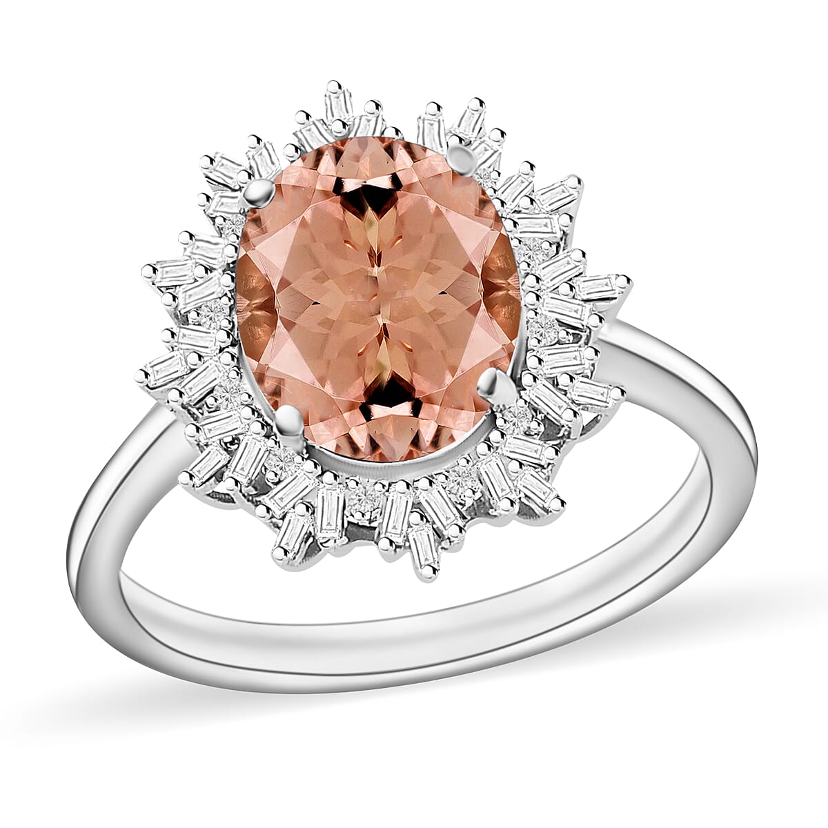 Reveal your style with this morganite ring in durable metal. The stone’s soft pink and peach tones create a bold, elegant statement. This luxury custom ring brings exceptional distinction and timeless beauty to your look.