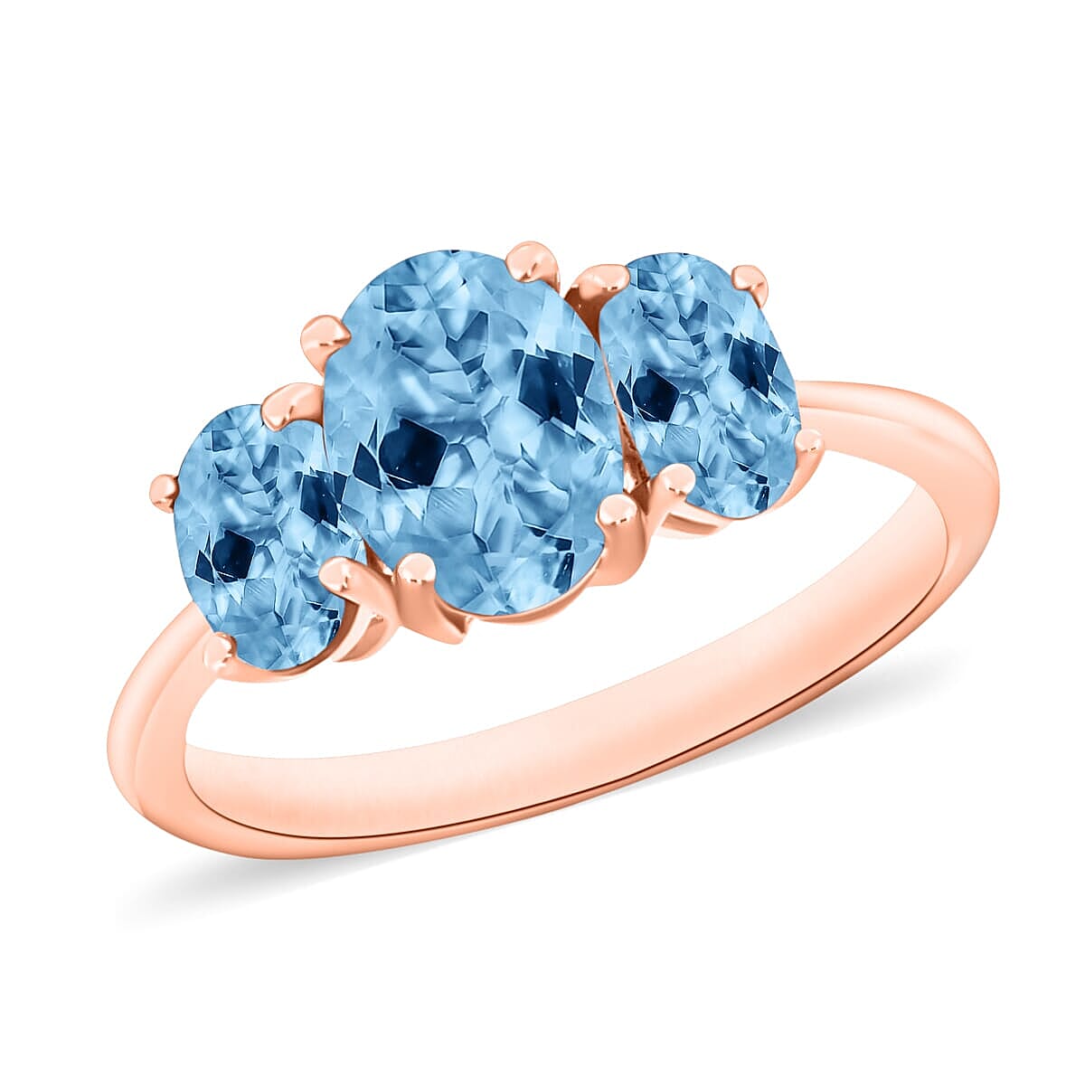 Rhapsody AAAA Santa Maria Aquamarine 3 Stone Ring in 18K Rose Gold (Size 7.5) 5.50 Grams 2.25 ctw (Del. in 10-12 Days)