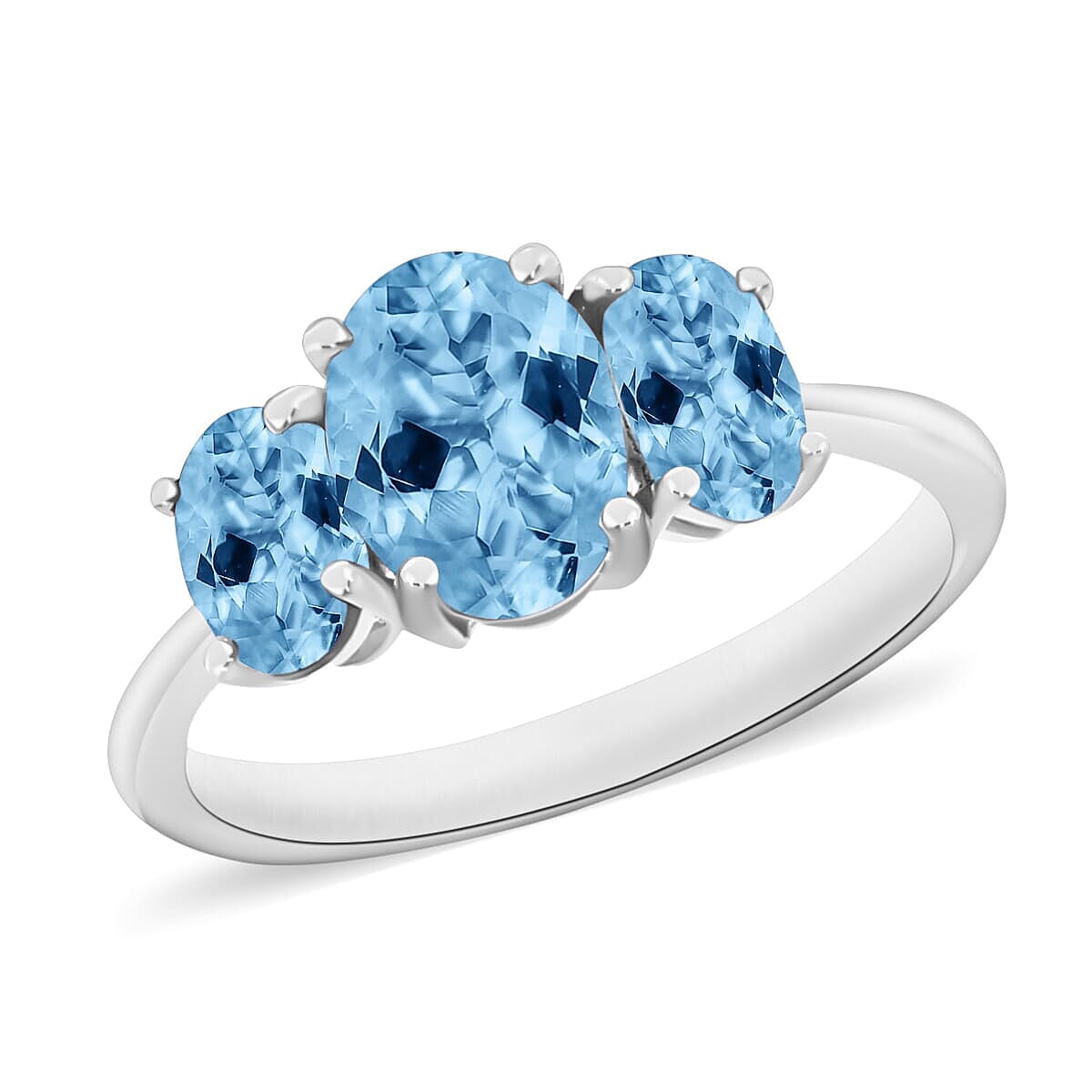 Refine your style with this exquisite 3-stone aquamarine ring in durable metal. This aquamarine ring for women offers a harmonious blend of color and brilliance. The three-stone design symbolizes the past, present, and future. Tailor this elegant piece to match your style.
