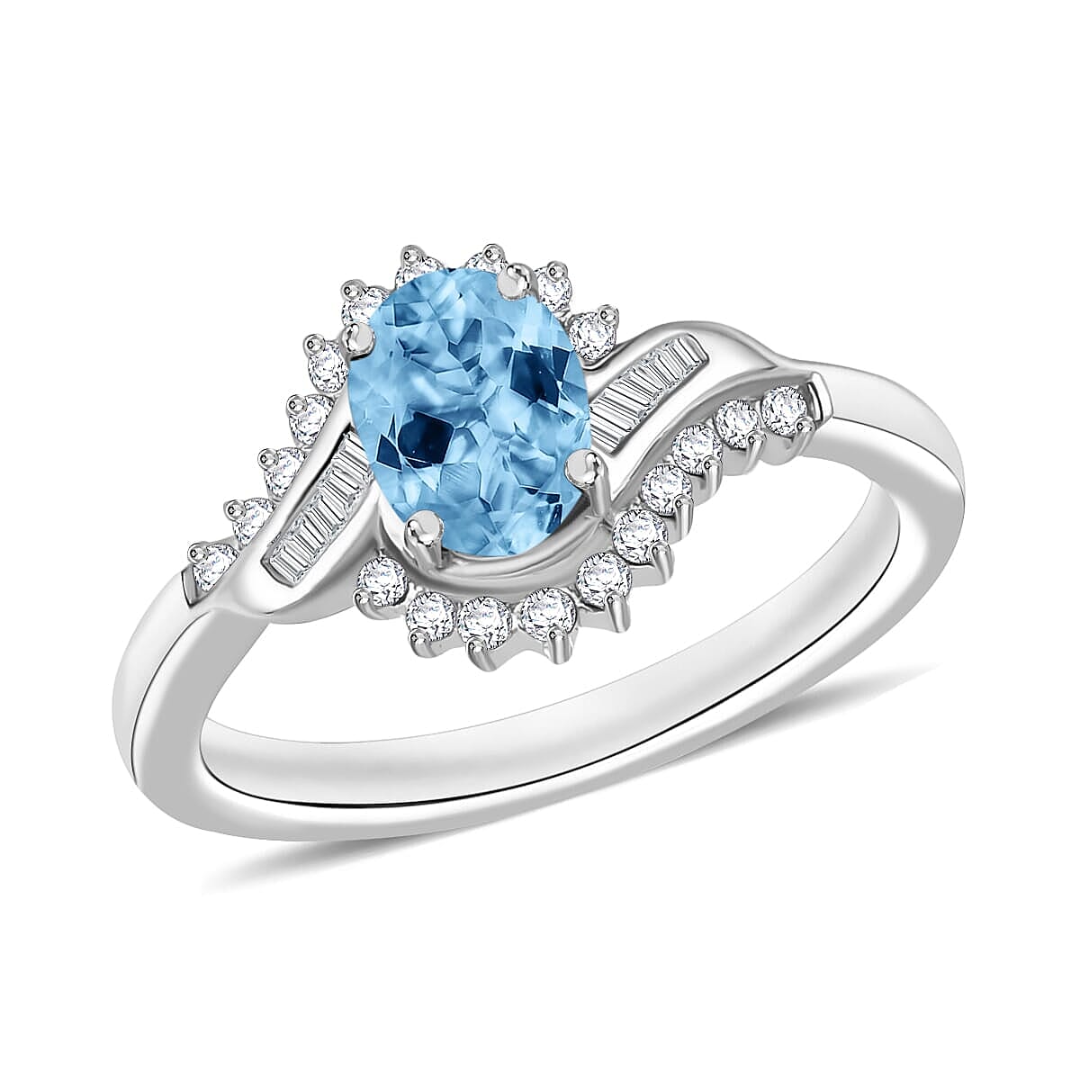 Rhapsody AAAA Santa Maria Aquamarine and E-F VS2 Diamond 1.06 ctw Ring in 18K White Gold (Size 10.5) 4.30 Grams (Del. in 10-12 Days)