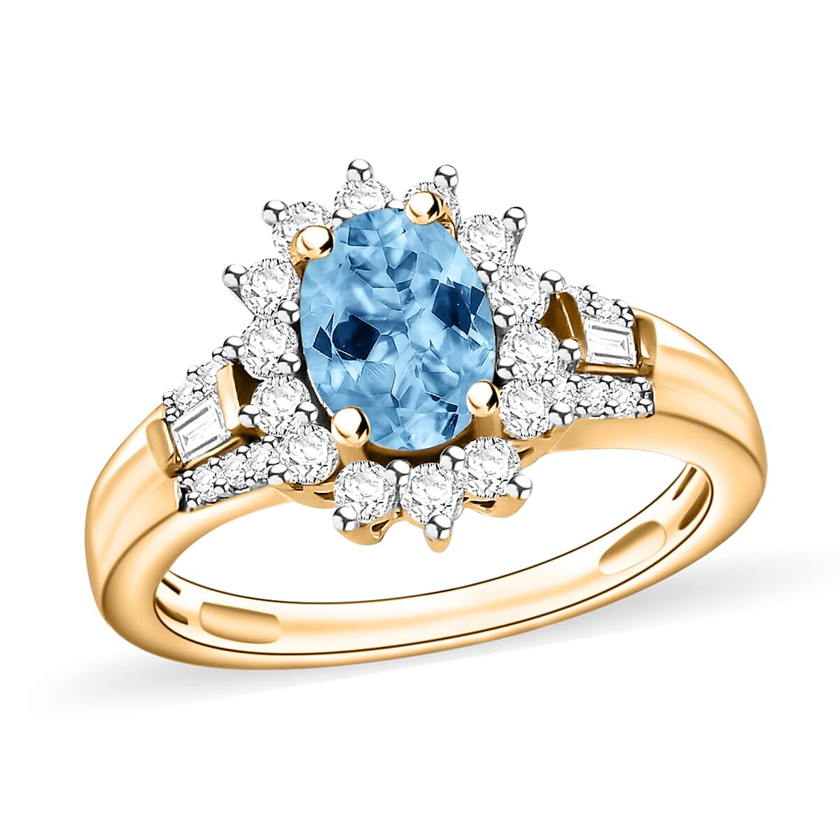 Rhapsody AAAA Santa Maria Aquamarine and E-F VS2 Diamond 1.25 ctw Ring in 18K Yellow Gold 4.60 Grams (Del. in 10-12 Days)