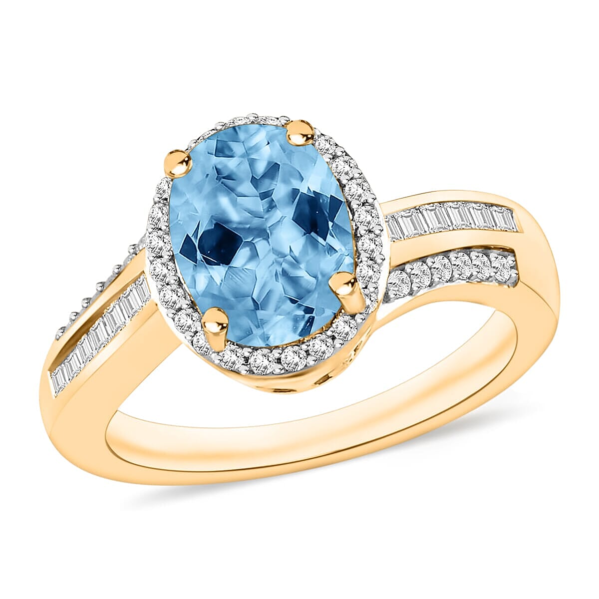 Rhapsody AAAA Santa Maria Aquamarine and E-F VS2 Diamond 2.10 ctw Ring in 18K Yellow Gold (Size 6.5) 4.60 Grams (Del. in 10-12 Days)