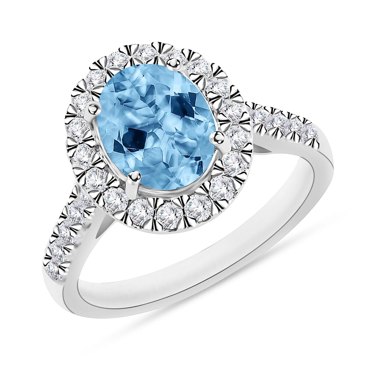 Elevate your style with this aquamarine and diamond ring in precious metal. This elegant halo ring for women features soothing aquamarine accented with sparkling diamonds. Perfect for any occasion, it adds refined brilliance to your look.