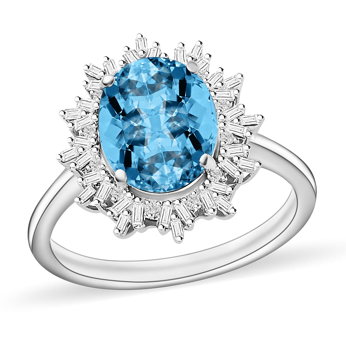 • Bold presence with oval aquamarine