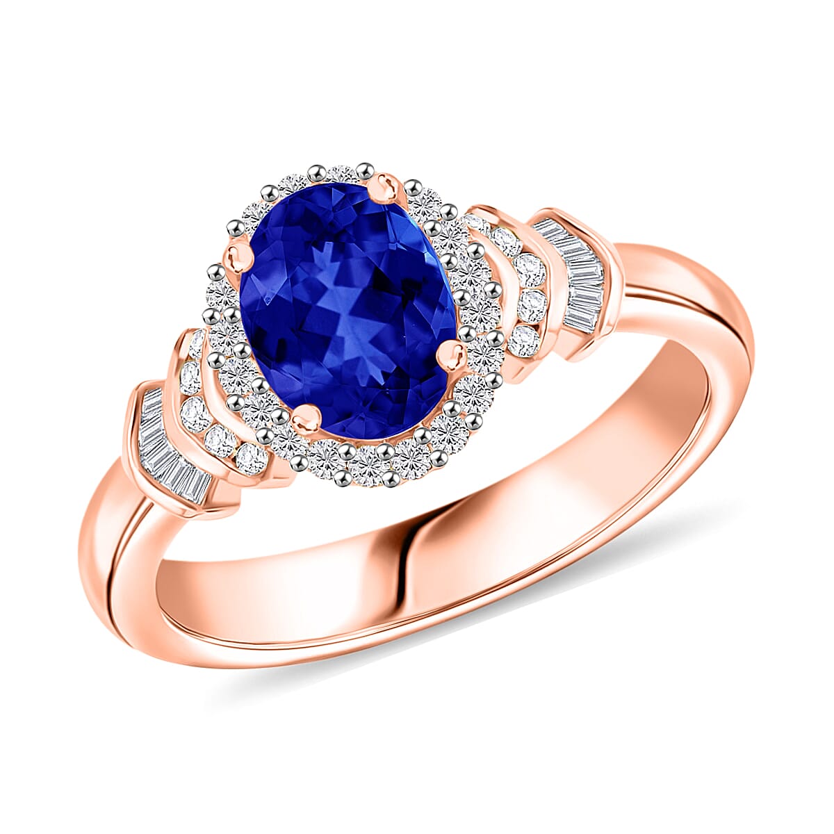 Rhapsody AAAA Tanzanite and E-F VS2 Diamond 1.60 ctw Ring in 18K Rose Gold (Size 6.5) 4.30 Grams (Del. in 10-12 Days)