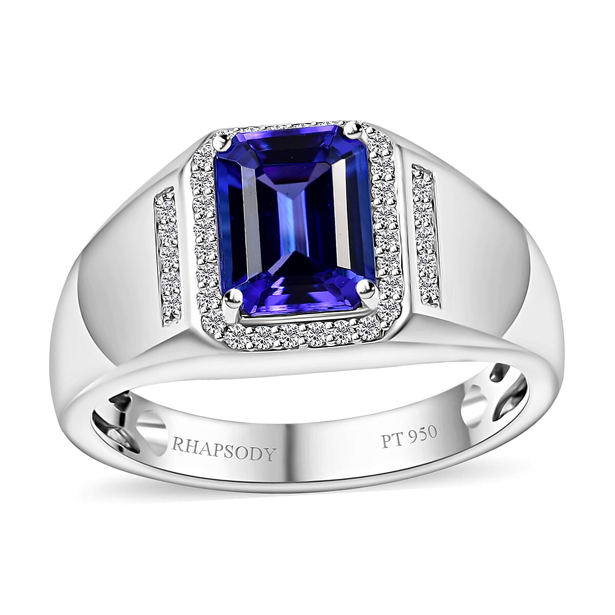 The AAAA-tanzanite and diamond men's ring in 950 platinum is a meticulously crafted piece that combines the deep violet-blue hue of tanzanite with the brilliance of natural diamonds. This platinum halo ring for men is designed for those who appreciate timeless elegance and superior craftsmanship.