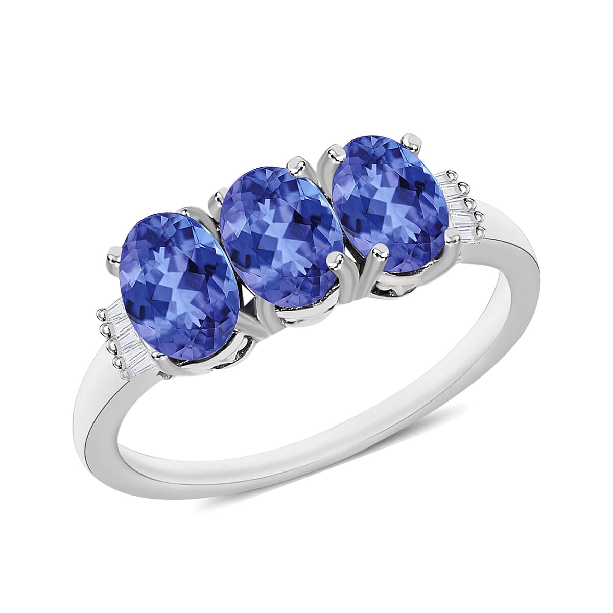 Curate your style with this tanzanite and diamond 3-stone ring in durable metal. This luxury gemstone ring for women features diamonds and tanzanite for a timeless look. Customize the size, metal, carat weight and grade to perfectly reflect your unique style.
