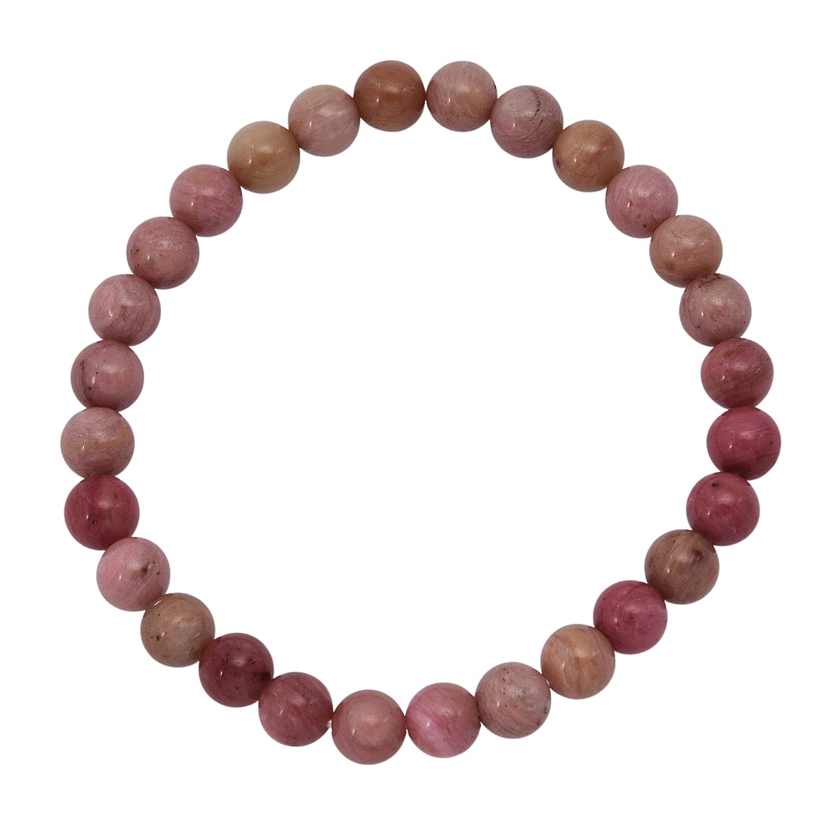 Elevate your look with this rhodonite beaded stretch bracelet. This elegant fashion bracelet for women features smooth pink rhodonite beads with natural marbling. Perfect for everyday wear, its flexible stretch design ensures comfort and effortless style.