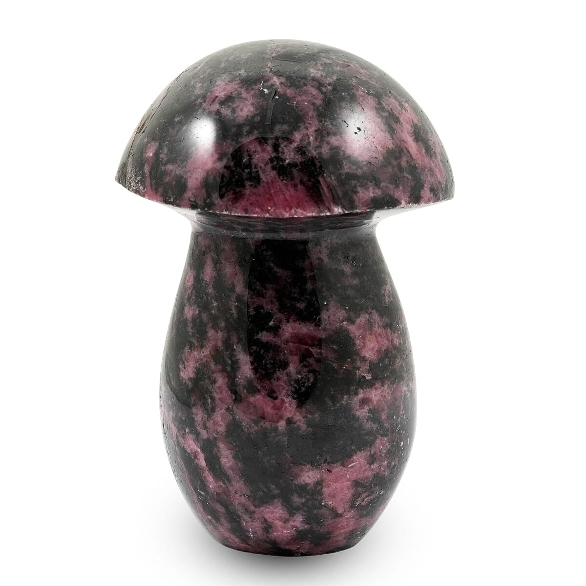 Carved into a whimsical mushroom shape, this rhodonite piece brings playful yet grounding energy to your décor. Its smooth, polished surface and vibrant pink tones create a unique, nature-inspired decorative accent.