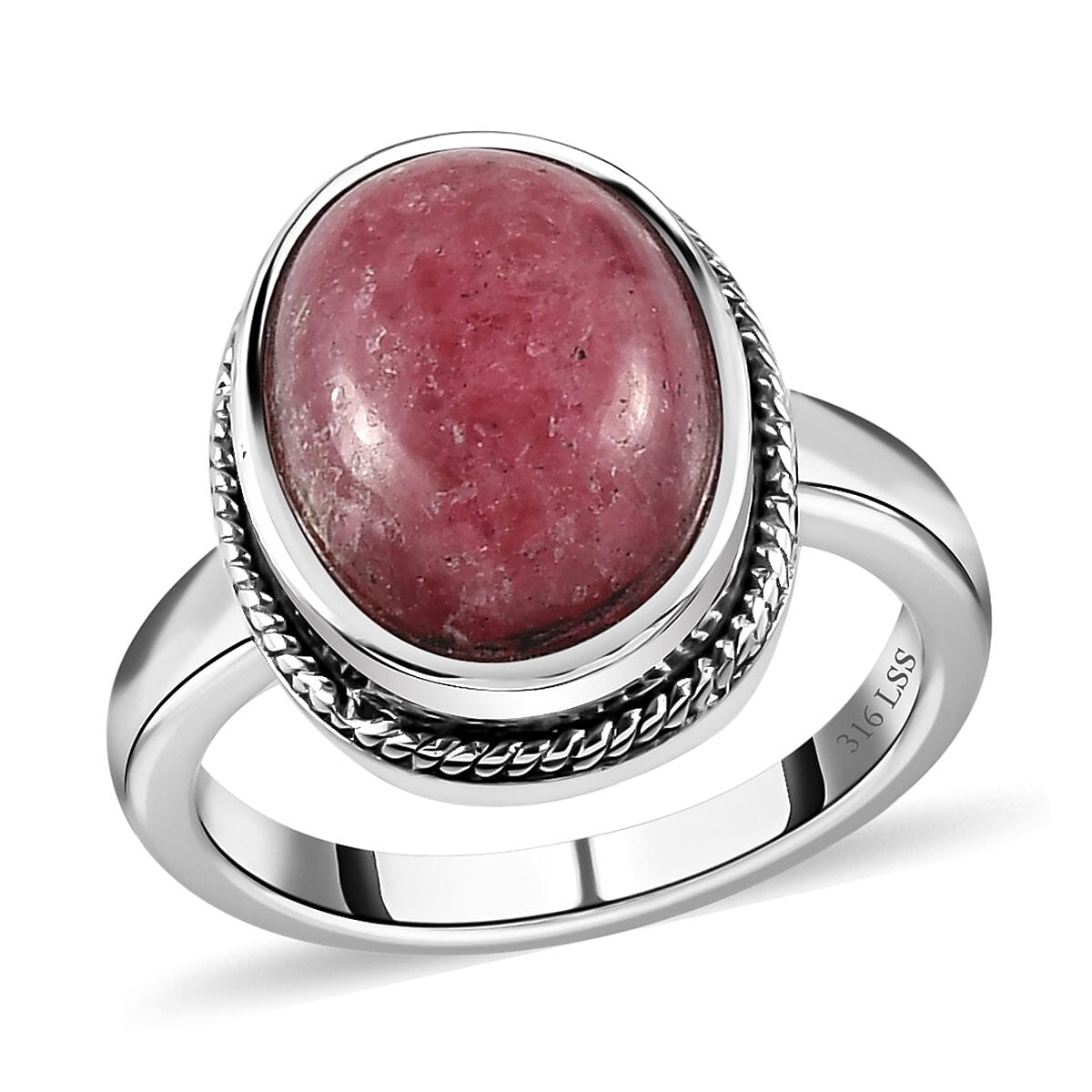 Rhodonite Solitaire Ring in Stainless Steel (Size 7.0) 9.00 ctw