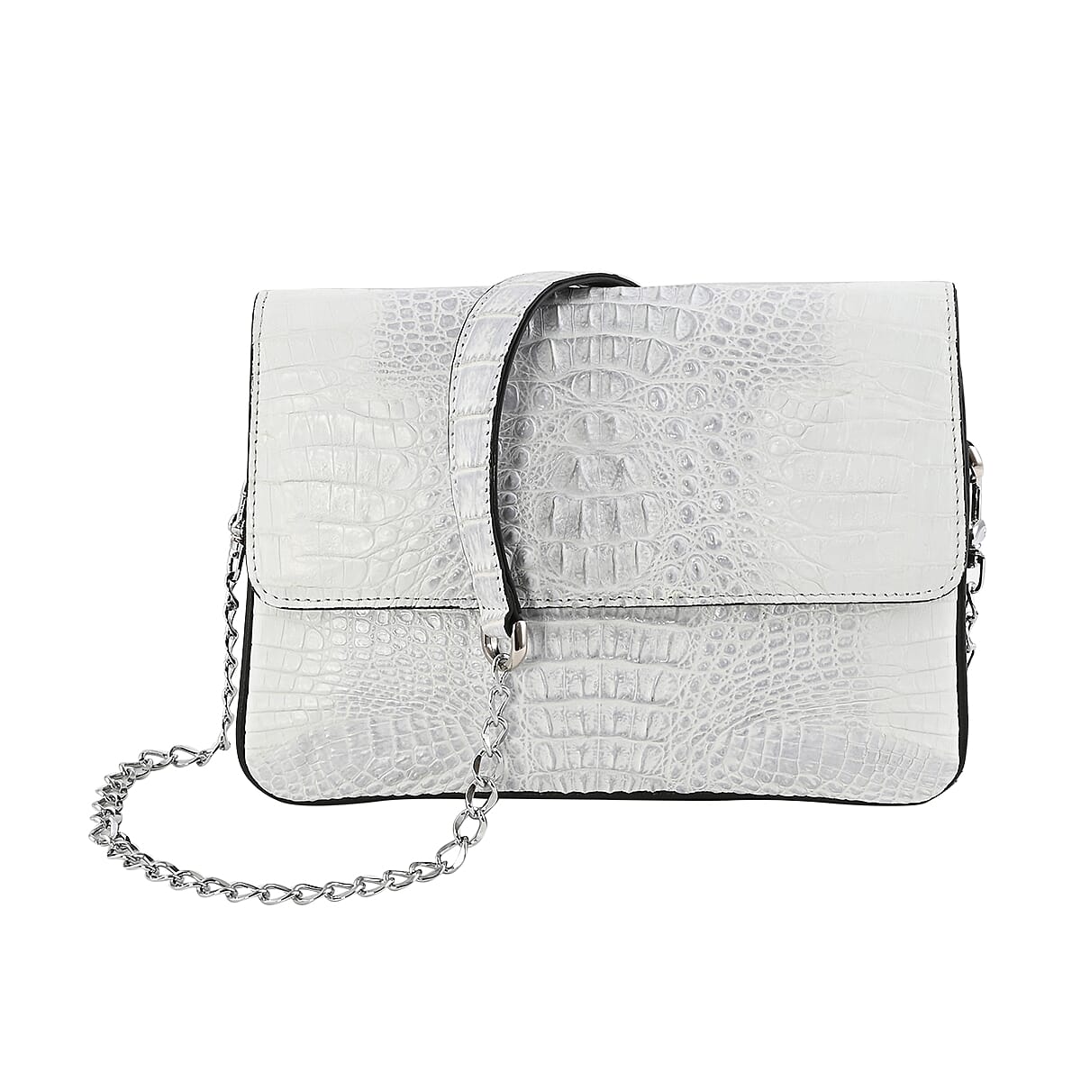 Delve into the classy appeal of this should bag. To jazz up your appearance, this stylish bag vaunts a crocodile pattern. It comes with a metallic chain sling and a snap closure that ensures the safety of your valuables. It has a spacious compartment to store your belongings with ease.