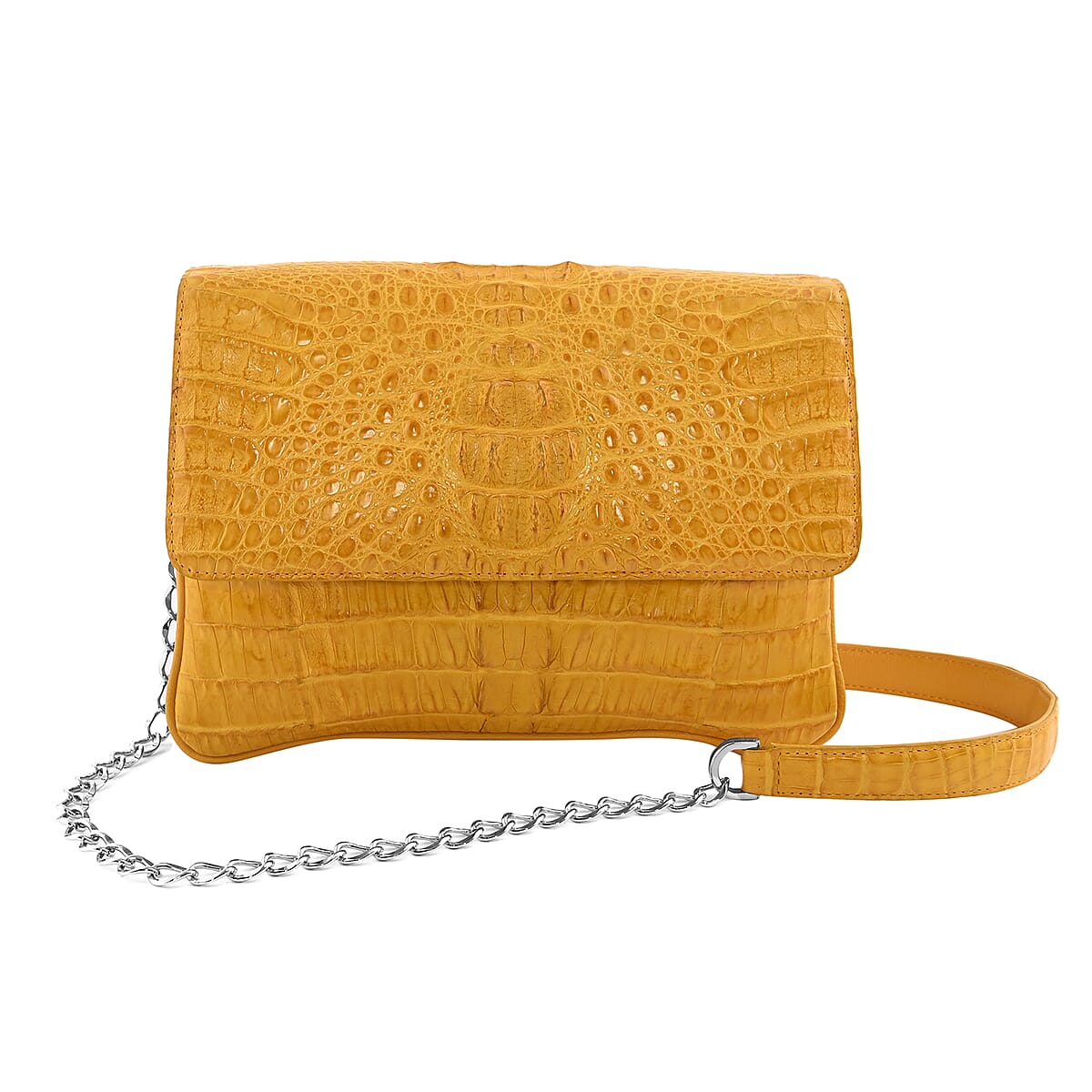 RIVER Brand Closeout, Organic Caiman Crocodile Yellow Shoulder Bag