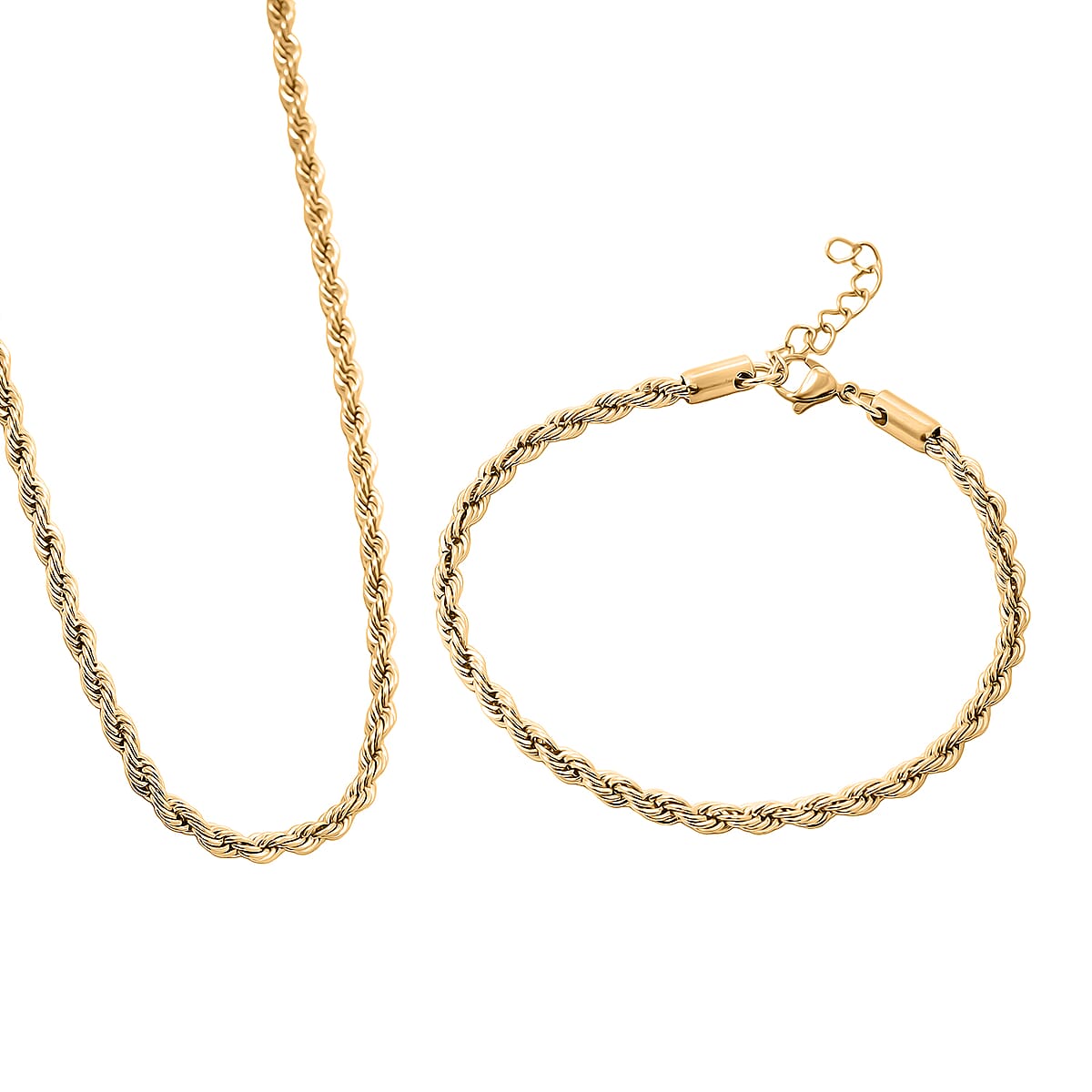 Rope Chain Bracelet (8.50In) and Necklace (24 Inches) in ION Plated YG Stainless Steel