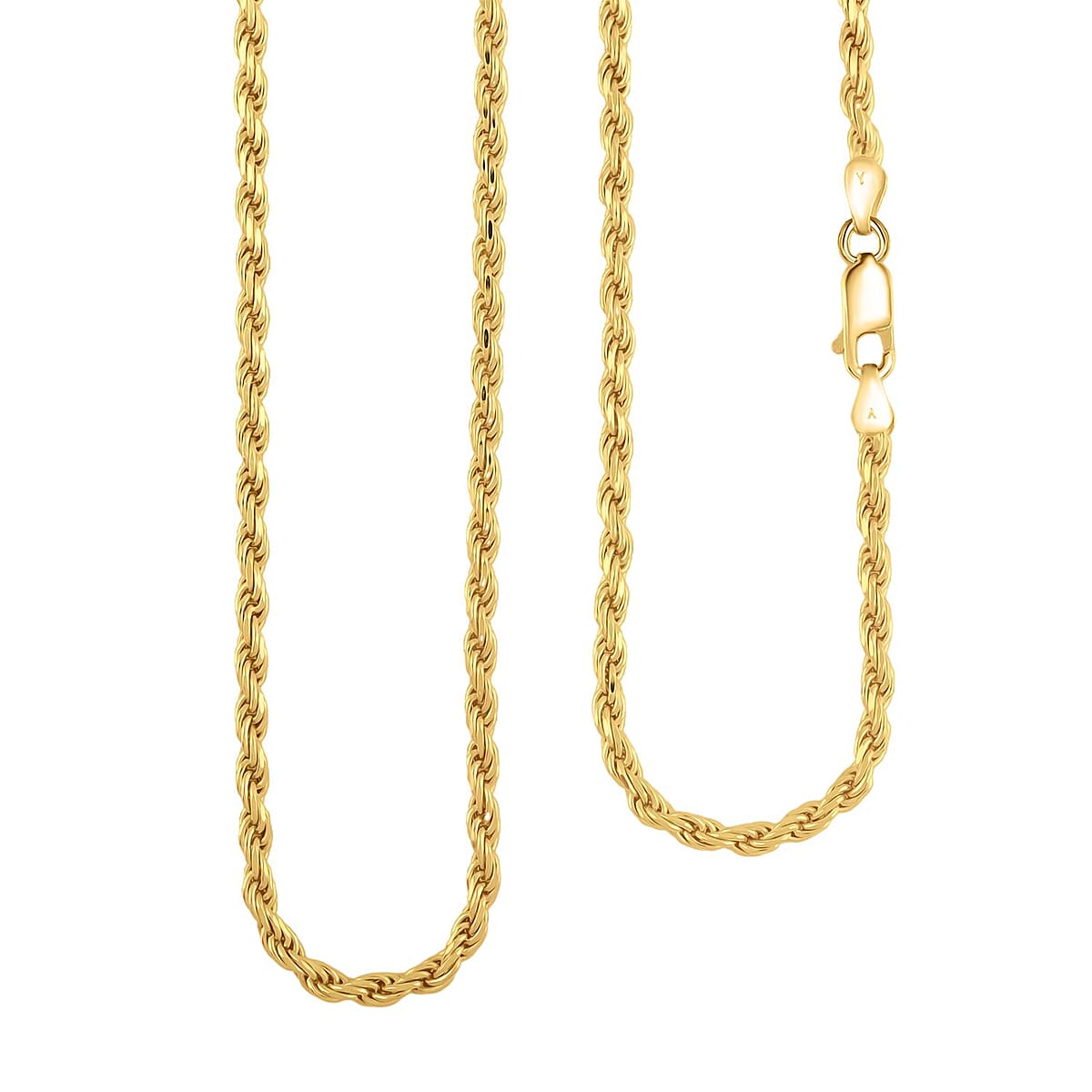 Rope Chain Necklace in 14K Yellow Gold Over Sterling Silver 17.8 Grams 24 Inches