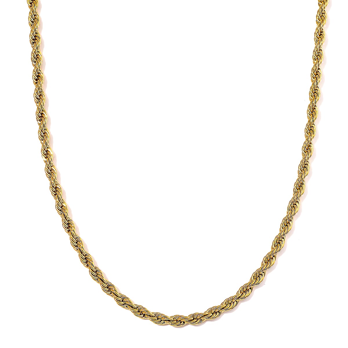 Rope Chain Necklace in ION Plated YG Stainless Steel 24 Inches