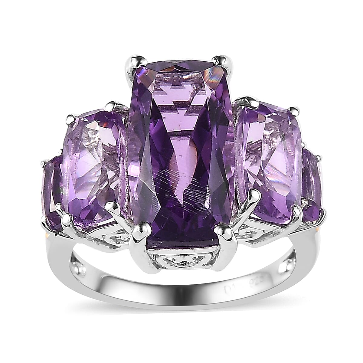 Rose De France Amethyst 5 Stone Ring in Vermeil YG and Platinum Over Sterling Silver (Size 6.0) 9.75 ctw