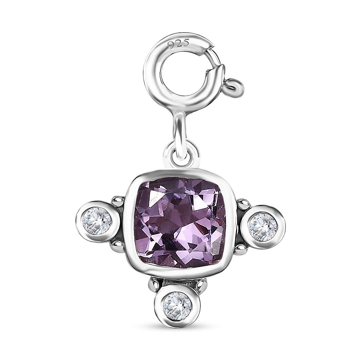 Rose De France Amethyst, Moissanite Medallion Charm in Platinum Over Sterling Silver 1.50 ctw