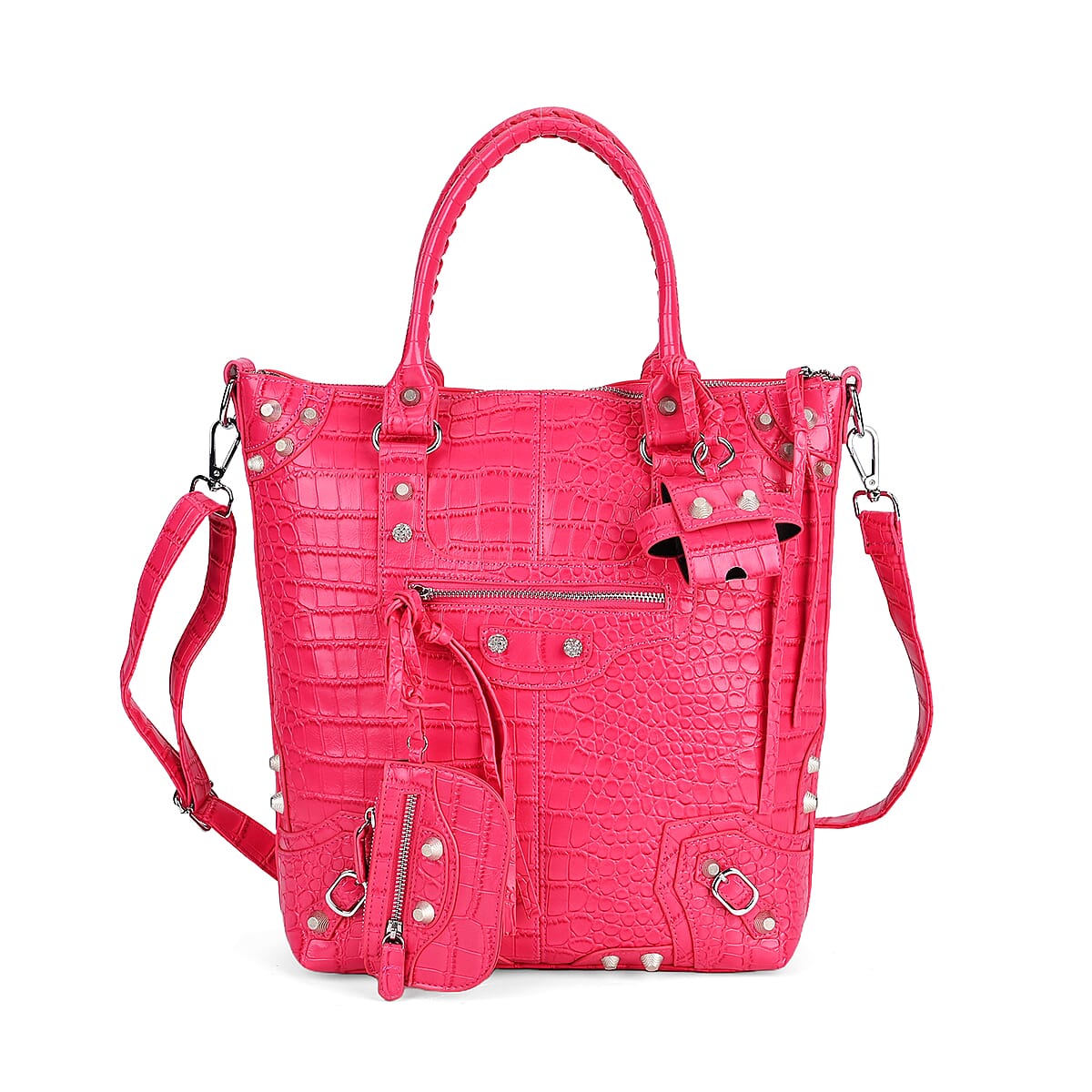 Rose Pink Crocodile Embossed Faux Leather Crossbody Bag with Long Shoulder Strap