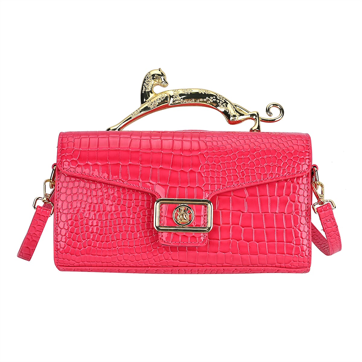 Rose Pink Crocodile Embossed Faux Leather Crossbody Bag with Shoulder Strap