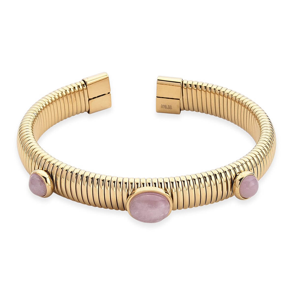 Rose Quartz 1.80 ctw Cuff Bangle Bracelet in ION Plated YG Stainless Steel (7-7.5In)