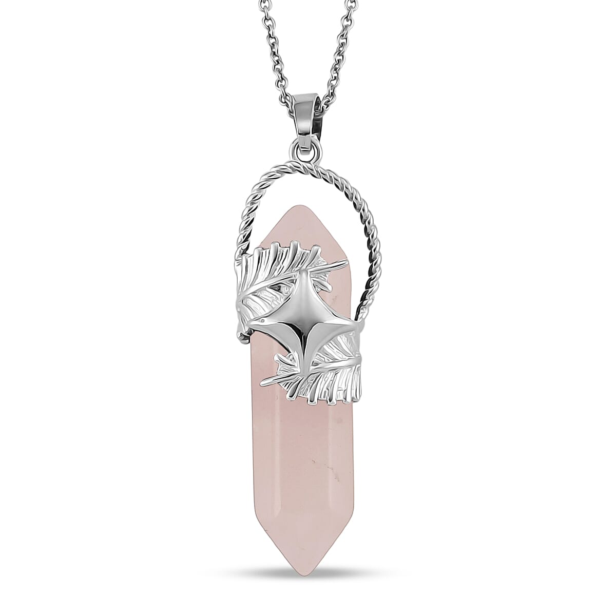 Rose Quartz 33.00 ctw Pendant in Silvertone with Stainless Steel Necklace 20 Inches