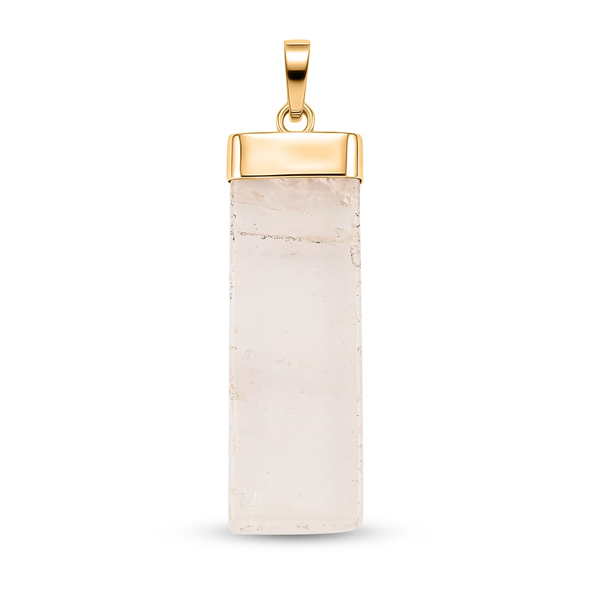 Rose Quartz 36.00 ctw Rectangle Pendant in Goldtone with Stainless Steel Necklace 20 Inches